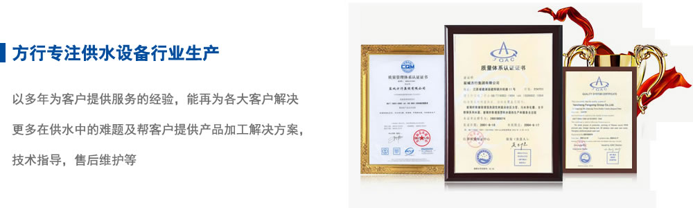 鹽城方行集團(tuán)有限公司秉承“務(wù)實(shí)、誠(chéng)信、拼搏、創(chuàng)新”的企業(yè)精神,經(jīng)歷了近數(shù)十年的歷程取得了跨越式的發(fā)展。高起點(diǎn)才會(huì)有更高的品質(zhì),優(yōu)雅的環(huán)境,先進(jìn)的設(shè) 備,高效的團(tuán)隊(duì),造就了一批批優(yōu)質(zhì)的產(chǎn)品。堅(jiān)持質(zhì)量、用戶至上的宗旨,公司全面通過(guò)了ISO國(guó)際質(zhì)量體系認(rèn)證,是制造供水成套設(shè)備廠家 之一。經(jīng)悉心打造,已享有較高的知名度,產(chǎn)品遍布全國(guó),不斷研發(fā)全新產(chǎn)品,滿足消費(fèi)者的需求 | |